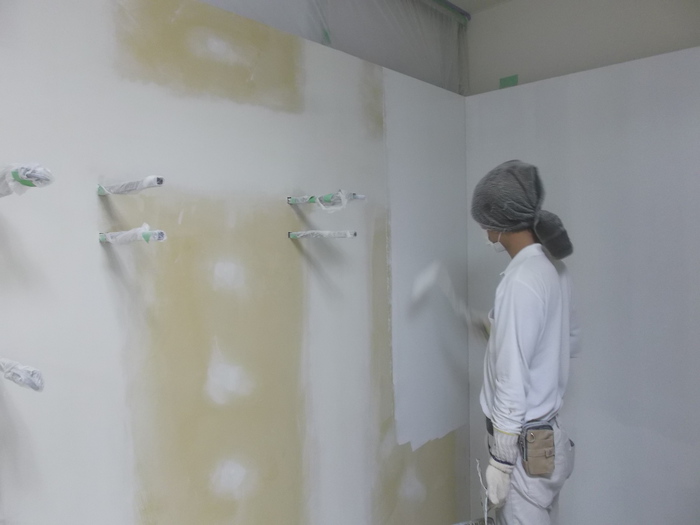 画像のようなお店の中の新規の壁など塗装 まずは下地処理を