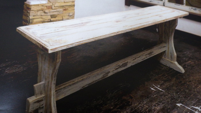 そこに白色ペンキを塗りキズをつけ汚しをかけていくと写真のような
